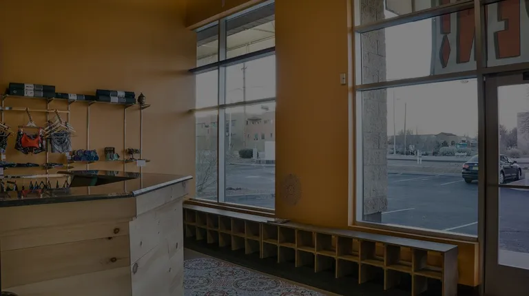 Gorgeous, spacious, serene lobby at Hot or Not Yoga NM.