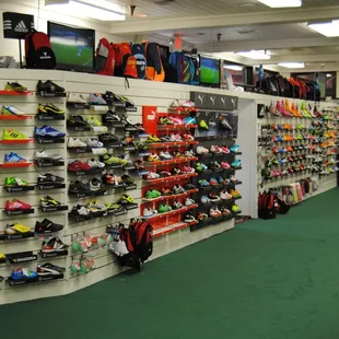 House of Soccer has a great selection of adult and youth cleats. They almost always have my boys shoe size (Which is great since my boys don't try their cleats on until the first day of outdoor practice). The staff is friendly and knowledgable. Plus there's a big area to test the cleats/shoes and the HUGE selection of soccer balls. Prices are the same as the box stores or better. Keep it local!!!