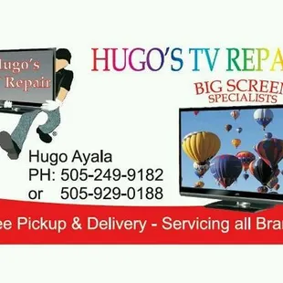 Hugo was very helpful in installing my new 65 inch curved TV, He also moved my 50 inch tV upstairs and installed it as well. Having Dish he synced all four of my TV's to the proper remote controls. His knowledge of televisions was very helpful in understanding my new K4 set. I highly recommend Hugo TV Repair.Ralph