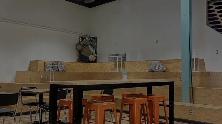 Spacious seating. Location downtown so can serve many. Food next door.Some outdoor seating available but inside there is are two community high tops, two and four top tables, and a nice tiered bench seat are in the corner. Four high with a few pillows and some power supplies.Nice attendance here on a weekend holiday.