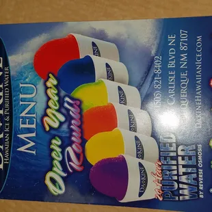 First, let me start off by saying that shaved ice is wayyyyy bedda than a snow cone (in my humble opinion)...the texture & consistency is so smooth, the flavoring doesn't fall to the bottom, option to add ice cream at the bottom, or cream on top. They use reverse osmosis to purify their water, and make shaved ice from there. Kids cup sizes $1.50...customer service that seriously SHINES in the true spirit of Aloha!! They also serve smoothies, blended coffee drinks, gourmet hot dogs, 100% beef, and the combos look really interesting!!! I definitely would like to try the Habanero surfer or the wasabi surfer next time around!! They serve hoagies, sliders with Hawaiian mac salad, nachos, spam musubi, and pretzels. I saw some super sized cookies available, and even some Hawaiian imports including mustard, coffee, tea, chocolates and macadamia nuts. Bags of shaved or crushed ice also available.It's nice to know their shaved ice has No High Fructose, No Corn Syrup, No Preservatives, Fat Free (Sugar Free available) and Gluten free. They also offer party packages which are so reasonable!!!I ordered the "tango" with cream on top (orange & mango combo) & the kids couldn't decide, so the rainbow was suggested and they were not disappointed ~Locally owned and operated...what a joy it was to meet yet another passionate business owner who loves serving this community.