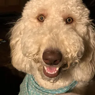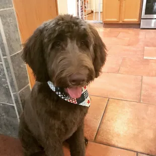 Pampered Sherlock! He even received a bandana