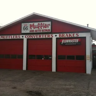 I had new brakes, shocks and struts installed at a major chain automobile shop in early May. When I drove away, my car was making a loud, clanging noise as I drove over every little bump and crack in the road. I brought it back to the major chain store to see what was out of place. They found nothing wrong (with their workmanship) and told me that it was probably my tail pipe because it was moving side to side. They suggested I take it to Jim's 66 Muffler for inspection. I brought my car in the next day and explained to Jim what might be the problem. He put my car up on the lift and then he and a fellow employee proceeded to inspect my whole exhaust system. They even bounced my car a little to see if they could hear the noise I was talking about. They both could hear it but it was not my muffler or the tail pipe. Jim said it was perfectly installed and holding up nicely and that nothing was amiss.I ended up taking my car to a Toyota dealership for an inspection because the noise was so unusual and I was sure something was wrong. They discovered that the initial brake installation had not been done correctly and that they had not tightened my front brake calipers. Major safety violation! I want to thank Jim at Jim's 66 Muffler for being so kind and carefully inspecting the underside of my car and for confirming that nothing was wrong with the exhaust system. Extremely professional and excellent service!
