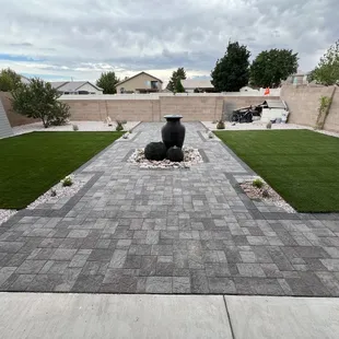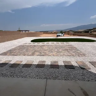 Patio, Bench, And Fireplace Made Out Of Pavers And Flagstone