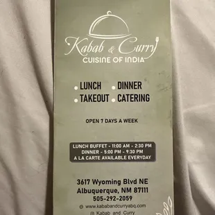 Just opened on Wyoming! Kebab and Curry had a dual selection buffet set up. Delicious Indian food on one side, fresh fruit, salad and dessert on the other! Most Indian restaurants in Abq have started to all taste the same with the flavors, this place has richer- style dishes. It was phenomenal! And the garlic naan was heaven. I went back too many times for more... The owners were all so nice and friendly as well! Got to meet the whole family. I definitely enjoyed how light and airy the vibe was as well. Good luck with parking once everyone eats here! You'll be addicted too~!