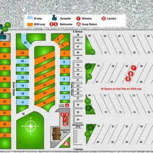 Define Camp has decent bathroom facilities the new side that they put Facing East has 50 amp hookups and will not trip the breakers like the old side so if you have a unit that is 50 amps go to the gravel side there are no trees but the bathroom is newer and again 50 amp logos