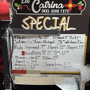 These were the featured specials. Prices are reasonable and credit cards are accepted.