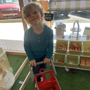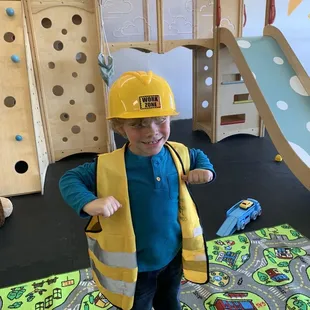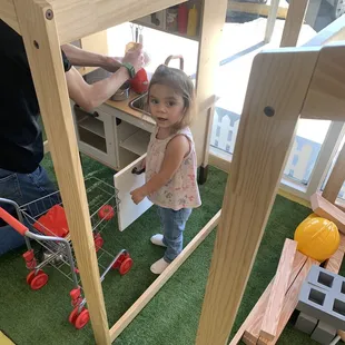 My nephew having fun in the tool area.