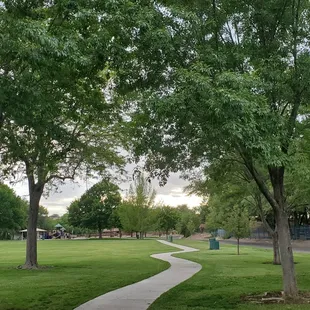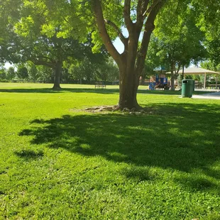 The Good: Newish play structures, the large one has several levels. Five acres total real estate. Two big kid slides, one small. A cool swirly platform thingamajig that the oldest kids seem to love even more than those it was designed to entertain. Bucket swings and regular size swings. Wood chips rather than sand, important in the hot summer. A covered picnic area for lunch and/or spent parents. Immense grassy field, perfect for soccer/ultimate Frisbee/kickball (no baseball diamond, however).The Bad: Not well cared for or maintained. We usually find trash lying around, some of it sketch-o, and while I'd love to put all of the blame on shifty patrons, I'm beginning to think the city isn't investing enough to keep it clean. No shade on the playground-not unusual. The metal scooper sitting device (which gets its own sandbox for no obvious reason) is often broken. No lighting after dark. Rather limited bucket swing diameter. Over-soaking sprinkler system sometimes breeds mosquitoes by the swarmful. Trees line the perimeter but they're pesky, a serious waste of shade opportunity.The Verdict: With a new Community Center coming next Fall, expect a resurgence of activity on the grounds and in the 'hood which should translate to more of a deterrence for the shady types, and more kids on the scene. Decent, but not great park for families, and avoid during the heat of the summer.