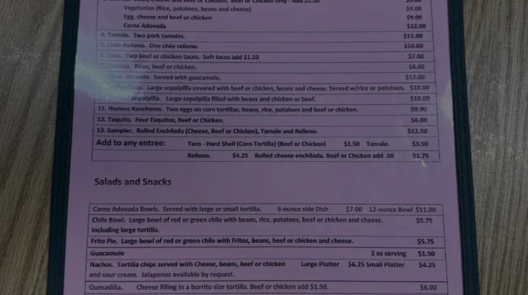This place has a super local feel and flavor. Very much your typical New Mexican food. What I did enjoy very much enjoy was the Chile Relleno the batter was very crunchy and not soggy even though it was smothered, I loved that. The red chile had a very home made flavor. The service was very friendly and very personal. Everyone that was there was talking to each other by first name, customers and employees. So they have regulars. They were playing some cool music. If you're into supporting small local places this is your spot. I will be coming back for sure.