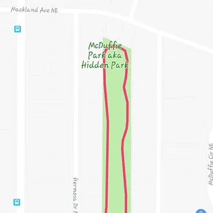 The city of Albuquerque (and the sign) say that this is McDuffie Park. However, locals know it as "Hidden Park"...and for good reason.This is an awesome place to get some alone time and feel kinda like you're in Narnia. You can't park in a parking lot and roll right up. You have to park right outside someone's house and then look for a small path that leads to the hidden cache of green and shade. When you're there, you can't see any streets (or people usually); It is completely surrounded by peoples' back yard walls. I have a special love for this park because my husband took me on our first date so that we could have some peace and quiet to chat. Nine months later, he proposed at Hidden Park.