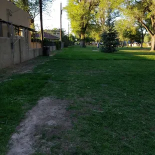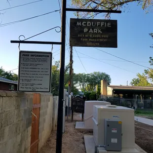 McDuffie is a unique park, the city's only hidden park! Pros: It is close to UNM and other schools like Jefferson Middle- distances from Central campus: 3 min drive, 8 min bike ride, 30 min walk.-Although it's hidden, there are 7 entrances, making it easy to access.-It is a good size: 13,000 sq ft.-It's secluded: good for intimacy & peace; in a quiet neighborhood w/ kind residents.-It has several strategically placed benches-It supports wildlife: there are several tree species which provide shade, ~41 different bird species (including roadrunners!)-There are weekly happenings! (such as tai chi classes)-Dog park: It's practically fenced in, there are water bowls placed by a resident-A place to play soccer, read a book, walk your dog, have a picnic, study or meditate, or simply RELAX! -It has a HUGE Free Little Library- free books! or a place to donate old books.Cons: There is no parking lot available, only street side parking.-The neighborhood it's in is close to known crime district.-It is not easily discoverable. (thank goodness for these reviews!)-It has a lack of amenities: no playground, no restrooms, no picnic tables.-There are lots of mosquitos (especially in summer)-Many owners let their dogs off the leash.-The park prohibits glass containers/alcohol-Hard balls (baseballs, etc) are prohibited in the park.OVERALL: McDuffie is good for the average park-goer, its entrancing location makes it FUN!
