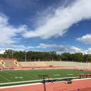Great place to watch high school football games, track meets, or go for a run. I live right down the street and there seems to be an event going on almost every evening. I like to go run intervals and run the stairs some mornings. The only problem is that it's pick and choose when it's opened. I've gone multiple times around 7am and it is still locked up. Some days it's opened at 6am. I guess it just depends on if the key holder wants to wake up or not? I have no idea. It's a great 400m track. Go run, go watch games, go get your fit on.