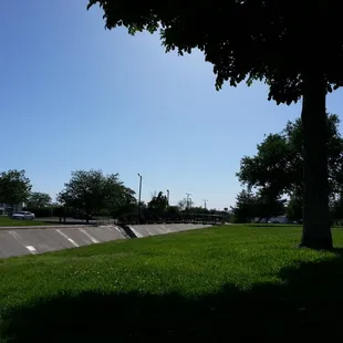 I recently relocated to this area for work, so I've been in the mood to check out the neighborhood on my lunch breaks. I came across this park and it is very nice. The Hahn canal goes through this park, breaking in a "Y" fashion. But the park is big, so even though the canal is here, it really doesn't take much away from visitors using it.And there's lots to do. There's a nice tennis complex, with 4 tennis courts. There's plenty of space for walking, which is what I like to do. And there's a swing set for the kiddos. There aren't many picnic tables, but plenty of grass to sit on. Just bring your own blanket to place on the ground to enjoy a meal that you've brought with you.I go here each weekday, so maybe I'll see you there. :)