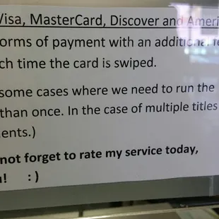 The customer service here was amazing. Never have I experienced such great customer service at an MVD. Thanks for all you do! These people deserve a raise!