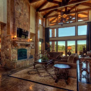 A beautiful gas fireplace and stone mantel professionally installed by Mountain West Sales.