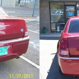 I gotta tell you, this place is spectacular for service. I took my van in to fix a big ol dent in the back gate caused by the spare tire of someone who backed into me. They fixed it up right nice, even correcting the barely noticeable scratches on the bumper. My husband called them out for an "orange peel" texture, which they immediately offered to sand and repaint, but after comparing it to the factory paint on the top portion, husband eased up, satisfied that the work was appropriate.To boot, I noted some scratches on the hood, saying "I'm a little concerned about these cuz I honestly don't remember them being there." Without hesitation John offered to fix it for me free of charge. He said they could check the pictures to be sure (which they take from all angles for just this sort of circumstance I suppose). When he did, we noticed what looked very much like those scratches (tho it might've been a reflection). He didn't try to get or talk me out of it or anything, Just pointed it out to me and said he still wanted to fix it for me and to just bring it back after my road trip (I had a planned trip for the next day).Granted, the 4-5 day estimate turned into 9-10 days due to delays with delivery or some such. Perhaps that's why they were so generous with their time and resources in the end. And it was the insurance company paying for the repairs, so maybe that's why they were so meticulous in the work (to maintain their good standing and referral status with USAA). But either way, I'm supremely happy with the service and work done. It's four-not-five stars only because the real-time was twice what was estimated, which if I had to pay for my own rental would've bothered me tremendously. If you're not constrained by such a thing, I can feel perfectly confident in giving them a gleaming recommendation.