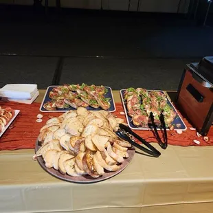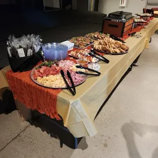 Food was good. It wasn't delivered on time and conflicted with the start of the event. Should have arrived at 5:30 and been ready at 6pm, He showed up at 5:45 and put everything out and finished by 6:15. Event started at 6pm. Not pleased. Tried to call catering line, no answer. Tried calling a restaurant and then he showed up.