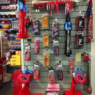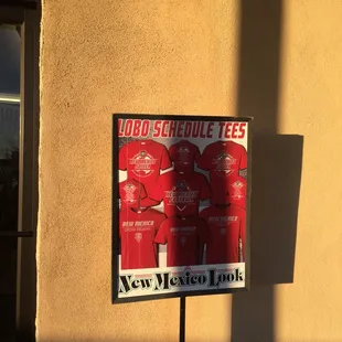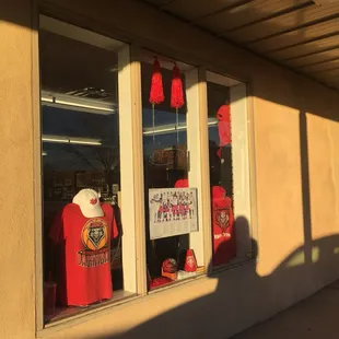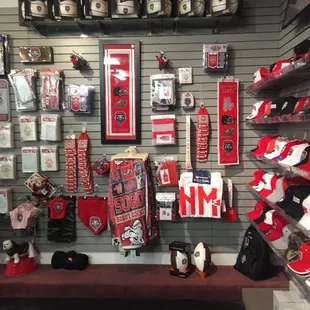 Lots of red and lots of lobos and UofM items. Fun dog t-shirts. They offer up a ton of stuff, a ton. It's definitely a one stop shop for all NM items.