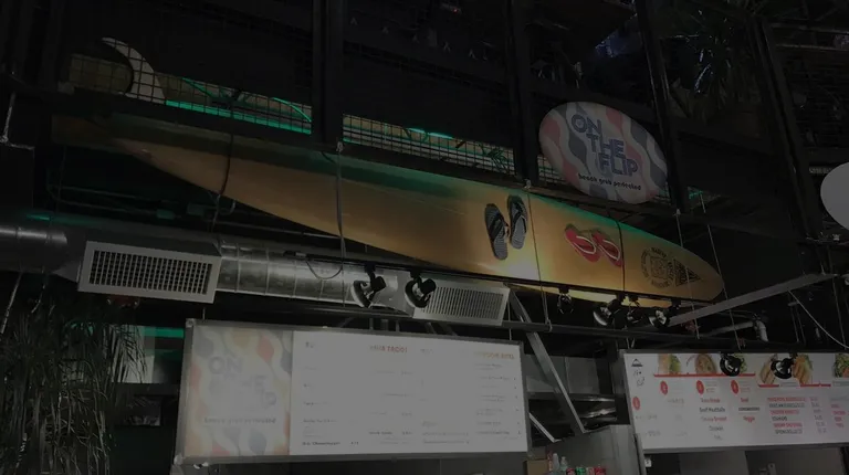 Not sure why this place hasn't been reviewed yet, but I'm assuming it's because they're probably pretty new!I was missing the "surf food" of LA so I came into the food court at Tin Can Alley and was immediately bombarded in the best way by some delicious odors. I followed my nose right to this place and after some perusal I decided on the Aloha Yard Bird Burger. One of my dining partners got the steak asada tacos.These guys (metaphorically) deliver! I really enjoyed my burger, and the "Hella Tacos" we got were also pretty good! I imagine if I had been surfing somewhere and then flown into ABQ and wanted something to quench my hunger, this would be the perfect choice :-PThere's a lot of options at Tin Can Alley, so there's plenty to try when you're here, but why not give a (presumably) new restaurant a go? I think you might find something you like :)
