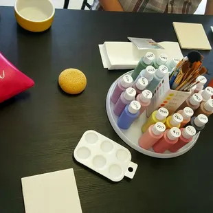 My sister and I attended one of their special events, so it was not related to pottery. We went for the Ladies Spa Night where we got to make and take a few different items. There were great snacks provided, some simple drinks, and fun making spa items at each table. The massage therapist, Shannon from Southwest Healing Massage was phenomenal. We got chair massages as one of the stations. That was the best part of the night. The part I would have rather skipped was the lecture-type style of the introduction from the owner about why we should use the oils she uses and not other peoples etc. It seemed a little more like a lecture and not as much fun. It was much better once we got to start going and have fun.
