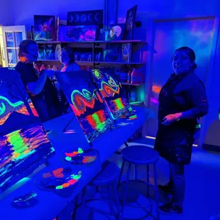 What an amazing place for a fun night out! My 2 friends and I came here tonight for a girl's night. I arrived before my group and was greeted kindly at the door. The owner spent time explaining everything to me since it was my first time. She was so kind! They offer alcohol, which is way cool for this type of experience. I loved that they had something for everyone - beer, wine, cocktails, wine slushes, non alcoholic drinks. Now to the painting- it was so much fun. And that's coming from someone who can't draw a straight line! We had Brittany as our artist leading our paint and she was patient, encouraging, and made the instructions easy to understand no matter the experience level. We signed up for a blacklight painting, which I highly recommend. The majority of the time was in the light but the lights were turned off a couple times to check out how they look in black light. I LOVE how mine turned out! When I left, I instantly checked what was coming up because I had so much fun! The people who work here are amazing and overall it's just a wonderful night out- date night, girl's night out, bachelorette parties, etc. GO HERE!!!!