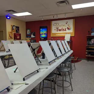 Best paint nite in town! I've done several. Love that it is a permanent space, has alcohol on site and has cameras!Let me tell you what a game changer the camera is. You can clearly see the painting from wherever you are in the room! The instructor is miked and you can hear them clearly, even with the ambiance music, which was great! Took my husband for his first time and he loved it and wants to do it again!Thanks for an amazing date nite!