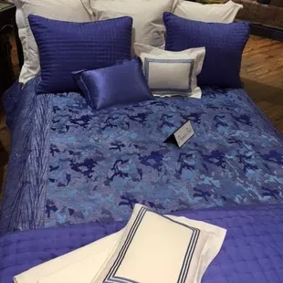 Missoni headboard cover and bedspread, Haussman Matalasse coverlet, Paulette Rollo Lambswool blankets and assorted slik pillows