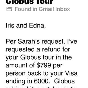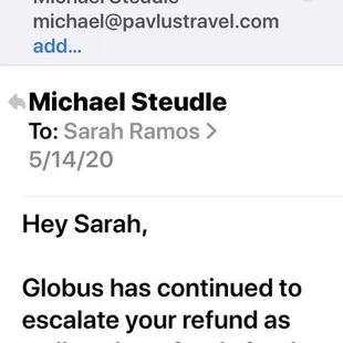 BUYER BEWARE: DO NOT use this agent for travel.In October of 2019, my friends and I decided to travel to Peru. We booked a tour through Pavlus Travel and made a deposit of approximately $6000. Due to Covid19, our trip to Peru was canceled. Today marks exactly 61 days since we were told that the refund was issued. (see attached) We have NOT received the refund. We have contacted them multiple times. At first, after advising us the refund was issued, they kept insisting we accept a credit voucher instead. Wait a minute, wasn't the refund issued already? No! They blatantly lied, utilized unethical stalling practices to try to convince us of allowing them to keep our deposit. (see photos)