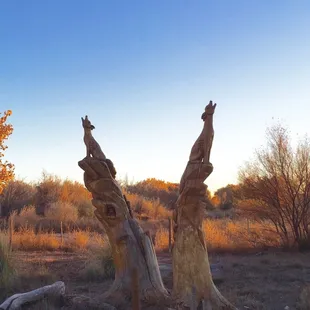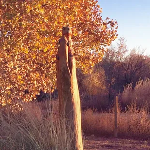 Now's the time to find this little urban oasis because -- you hear that? Yep, the sandhill cranes are back.There's a healthy parking lot here, if you enter headed east on Montano, but be warned that during this unique era of pandemic weekends, the lot fills up quickly and you will be ticketed if you park on the street. The open space is bike friendly, but make sure you have thick tires and sealant, #thegoatheadsabide. Spend a few minutes appreciating the chainsaw artwork forged by a firefighter who helped quelch a massive fire early in the century, and then take off headed south.You can follow the drainage trail which is wide and partially shaded, but here's our go-to: take the foot trail just east, by Bosque School. If you keep heading south you'll come to an area we affectionately call New Zealand. Why? Well, the wife, she's a true New Mexican and the first time she entered this comparatively lush, wild cottonwood grove she was like, "Oh wow, this looks like Lord of the Rings!" which, of course, it doesn't come close to resembling but, you know, for a local, getting lost in a swath of green is damn near impossible around here. So New Zealand it is. Go get you some trees.