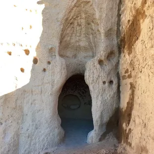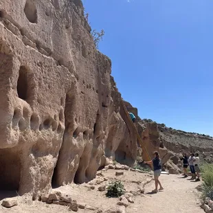 We have been to Mesa Verde and Bandelier and still found this tour interesting. It is a nice complement to the other two places. And, in contrast to the other two, there were 6 cars in the parking lot and 9 people on our tour. The Ruins are within the Santa Clara Pueblo and the guides are students from the Pueblo. The visitors center is an old Harvey House. We took the one-hour cliff side tour ($20 per person) which involved walking uphill on a dirt trail and then walking along the cliff edge next to the dugout dwellings and petroglyphs. The walk up hill on the dirt trail was the hardest part of the walk. The downhill walk was on a paved trail. However, the tour after ours started on the paved trail behind the Visitors Center. Very clean bathrooms here and some exhibits about the Pueblo's past and present in the Visitors Center. It's about 8 miles on paved roads from Highway 30. It's a dusty and hot walk so bring water (or buy it in the gift shop) and dress appropriately.