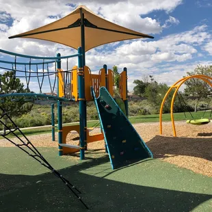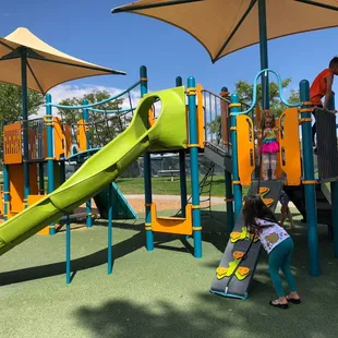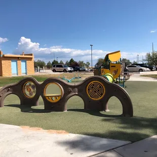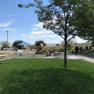 Cute little park I found by chance birthday party. The playground is small but Park Above-ish equipments and soft ground makes it fun for kids 2-10 years old. There's a pool (currently closed for the season), green field, sand volleyball court, bathroom facility (disgusting!! Don't use it!), and picnic areas with and without canopy. There's enough paved areas for kiddos to ride their bike too. All and all, it's a fun park. Just not sure what you'll need to do with the potty break. Diaper kids will have it easy