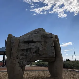 Cute little park area. And was fascinating by this rock hand. I walked around and try different stuff.