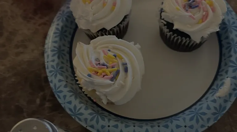 a woman and a boy eating a cupcake