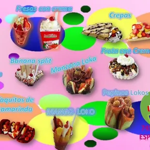 fresa,mango, piña,coco,rompope,tamarindo