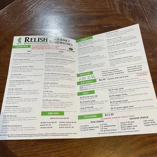 The Relish menu