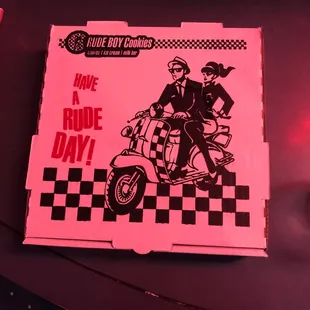 So glad that Rude Boy Cookies was at El Vado and they were open till 8pm on a Tuesday night. So that was great. We tried just about everything on the menu!Chocolate chip cookie, red velvet, peanut butter, biscochitos, sugar cookie, gold bar, and some ice cream. The presentation was the best. Once all our items were ready the nice young man handed me a pizza box filled with all our items. It was pretty cool!