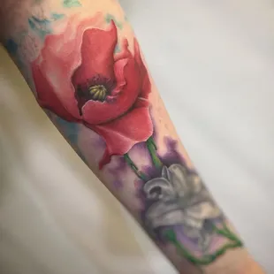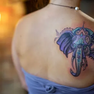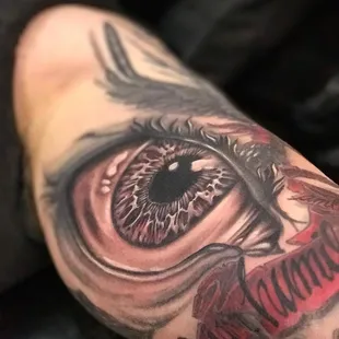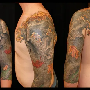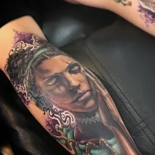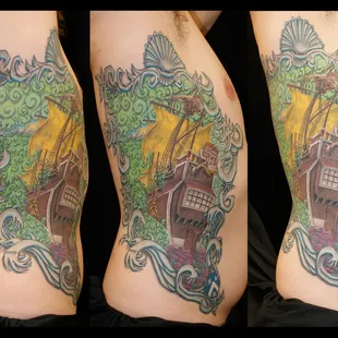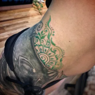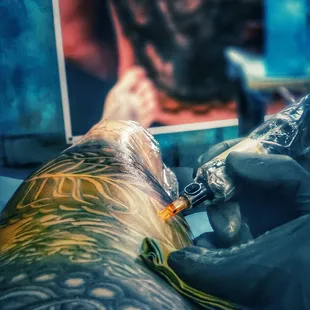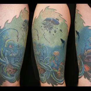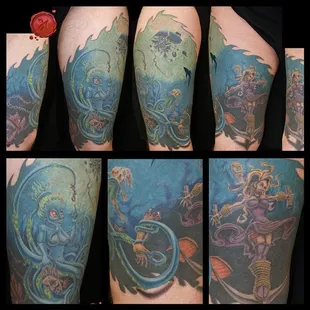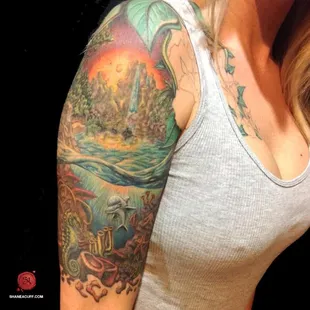 Shane is an amazing artist. This was my first tattoo. I went a little bigger than I had expected. I put my trust in him based off of his artwork online. He made me very comfortable. He took my thoughts and pics and turned them into a masterpiece! He did the work completely free hand . No transfers. He's absolutely a genius. I am so happy with my one of a kind work of art! Thank you Shane.