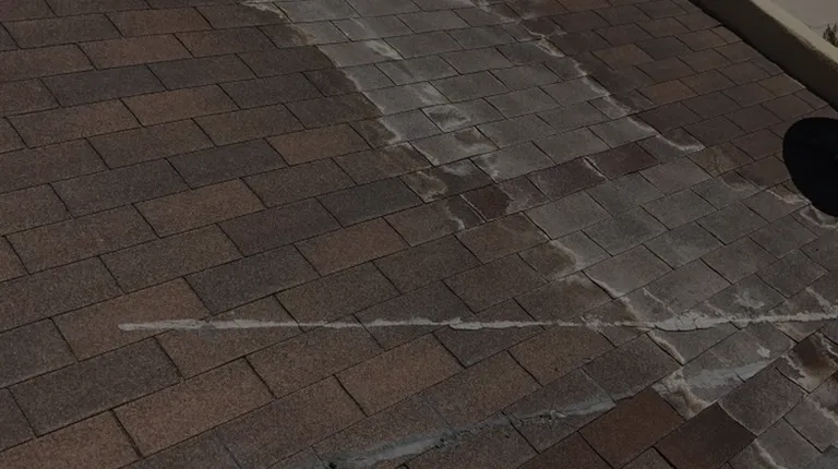 Damage from a second floor bathtub leak. Visible dark stains are potentially mold-containing.