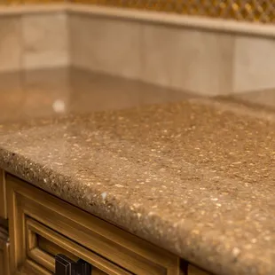 Crema Royale Granite with laminated chiseled edge. Fabricated and Installed by our talented craftsmen @ Sandia Marble!