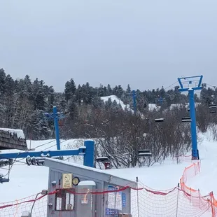 This ski area has a lot of great runs for beginning/intermediate skiers and snowboarders. The blues are on the easier side and there aren't a lot of black runs but the few they have are really short. The lifts are slow and lines can get unruly, but once you make it to the top you can take a long run down to the bottom or ski halfway down and take another lift back up.Parking is lacking and unorganized. We ended parking on the road past the actual ski area and were excited that they had a "shuttle" (trailer on back of a pick up truck) to take us to the ticket booth. I was really disappoint though at the end of the day when this shuttle wouldn't take us past the second lot and we had to walk up the side of the skinny road back to our car. Some excuse was muttered as we got off that they can't go that far after a certain time...The coolest thing is that you can pay a little extra on a lift ticket (I heard 10$) and you take can take the tram up to the top of the mountain from town and back when you're done instead of having to drive around the mountain. Pretty sweet deal if you ask me. We had an abnormal experience (I hope) considering trees fell on power lines and at first 2 of the 4 lifts were down. Later power went out from the other two and they had to close completely. When there were just two lifts running some employee was attempting to organize the line of people waiting to get on lift 1 by rudely yelling at everyone. Yelling that we were supposed to be no more than six wide and that he didn't know what we were doing. When someone commented to him that they should extend the ropes that divided the crowd into lines that they had at the front, he snapped that there was no more rope so we just have to figure it out. Also, most ski areas will have single rider lines to make chairs full and running efficiently, but anytime a single rider go to the front they had to stand to the side and call out for other single riders - they should've made a line for that but as I wasn't alone I didn't care too much. We got stuck on the lift with the second outage, but ski patrol was really nice. After it started up a while later they said we could have free hot chocolate for sticking it out, but unfortunately the power was out at the base too. However, we were freezing and asked the woman working the ski shop if we could get hand warmers instead since there was no power, and she went out of her way to make sure we got them which I & my frozen fingers really REALLY appreciated. Long story short- it's fine for something close to town but there is nothing that's fantastic about it. Not the most organized place but just to get a couple runs in it was fine.