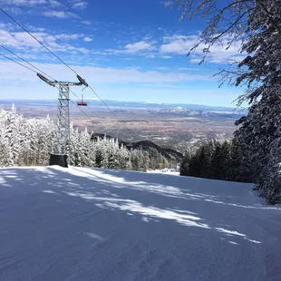 First time coming here! I've been snowboarding about 5 times and I love it but I'm still learning. I've visited sipapu and Santa Fe but not Sandia yet until now. First, I thought the price of lift tickets were not bad compared to the others. I paid $65 for Santa Fe and $55 for sipapu but $45 for Sandia. Rentals were also at a great price (first come first serve basis). Although my board was shorter than I wanted, I still had a great time! All the lifts were open and I really liked the slopes here. The trails I went down, had some great slopes. Some were steep but a lot of it was great for practicing toe and heel edge. The bunny hill was alright because it was too icy for me since the snow melted. I wish there was more powder but ABQ weather. It did get a little more powdery as you got further up the mountain. Another thing I wasn't to keen on was how the main lift took so long to go up compared to some other places but I understand it's probably for safety reasons. I just took the time to enjoy the snowy scenery. I'll be coming here more often since it's closer to home than the other two and it's a little cheaper but snowboarding is just awesome in general!