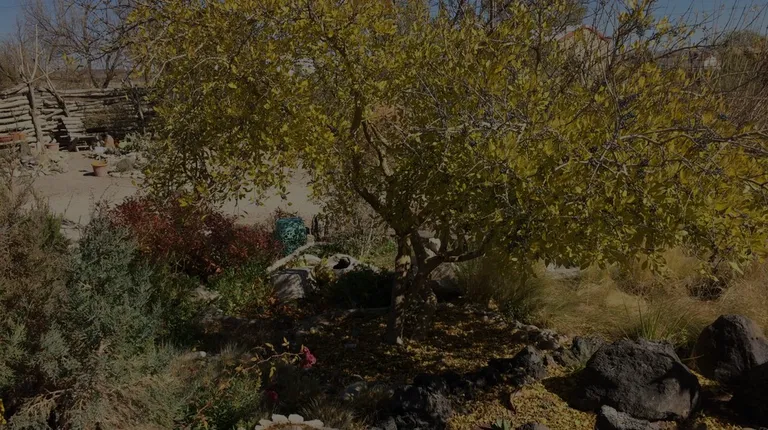 Garden Center Landscape with Sandia Mts. in background. (Fall)