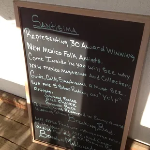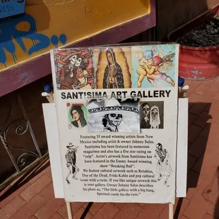 The one and only Santisima Art Gallery with one of a kind original art (and numbered prints) from local New Mexican artists. Make this your "must stop" while in Old Town Albuquerque, NM. Tell Johnny, Andres Bienvenido and family from California sent you.