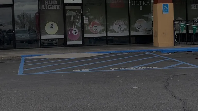 a parking lot with cars parked in front