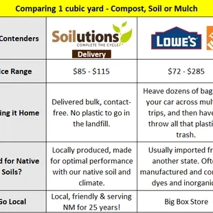 Riddle me this, Batman: How in holy New Mexico hell do all of those weeds grow in the first place? There ain't no water in the soil!This conundrum was the first of so many, many learning experiences to bruise my previously perceived Green Thumb ego, back when I bought a house with a big yard because, you know, I thought I wanted my own slice of green in the surrounding brown. I broke my back ripping up the north valley clay soils and seeded a lawn, planted about ten trees and put a big vegetable garden in the far back. I covered the rest of the dirt with woodchips. For about, oh, three months it was a lovely little haven. And then the southwest began to slowly strangle and bleed this midwestern boy, one fucking thorn at a fucking time.First it was the weeds. Most of 'em were covered in sick, painful stingers covering the stems and leafs, I needed industrial gloves just to wrap my hands around em. The Chinese Elm (technically Siberian, but whatever) started popping up everywhere, a gnarly witch that sent roots deeper than Hades, unkillable. Squash bugs, oh shit, that epidemic, I could forget about harvesting any water-filled veggie. Goatheads? Proof there is no god. Forget the lawn, seriously, you idiot, forget the fucking lawn. Want me to go on? Seriously, try me.Soilutions came to my rescue, and they continue to spell salvation for my sputtering plot o' darkness and damnation. Lesson one: the only mulch that sufficiently stamps out (most) weeds are pecan shells, which they carry. Otherwise, line the ground with weed barrier before topping it with wood chips or other mulches, Soilutions has about six varieties. Plant your vegetable gardens above ground in boxes. Use native, low-water varieties of plants (Plants of the Southwest has 'em), bury 'em in Soilutions dirt and compost. Finally, if you don't have a truck to hoist the goods, Soilutions delivers. Slowly, following years of sweat and tears, I have a yard worth pimping, and I'm not pulling up Chinese Elms anymore. This is THE resource for the unenthusiastic backyard enthusiast.