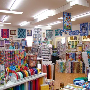 I'm loving the myriad of southwestern fabrics available here. So beautiful and fun!There's lots of other fabrics to choose from, of course. Service was terrific. Staff assisted me when I had no idea how to tackle a project I'm starting. There's fun classes available. I can't wait to take some quilting classes!