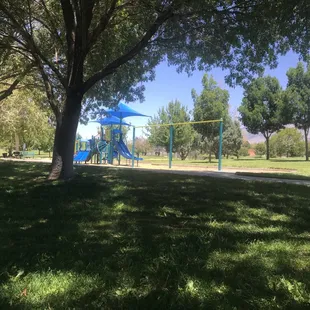 Sweet little neighborhood park tucked away off Montgomery, with some big fields to roam around, a few trees to climb, and some playground equipment, including slides and swings (big kid swings and bucket swings both). It's in my regular rotation, because the convenient location and fact that I've never seen it crowded make it easy to stop by, however briefly, when the kids could use some park time. I'd say this play structure is good for preschoolers but kids much older than 5-6 might find it a little boring or tire of it quickly. A great park to stop by on your way home!