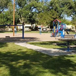 We were passing through from California to Florida and needed our three oldest to get some energy out. This place is perfect and is in a very safe area not far from the UNM campus. This spot is perfect and has swings for both toddler and bigger children. The only reason I give it four stars is because it is not fenced in for extra safety.