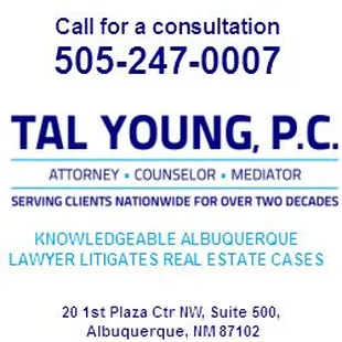 If you are looking for a crack real estate attorney, call Tal Young. In addition to his considerable knowledge in real estate, Tal is outstanding at negotiation, has patience, and has a gift for timing.He is easy to get in contact with and he kept me apprised of the status of the case every step of the way. He always answered any questions I had immediately. I am very grateful for his assistance.